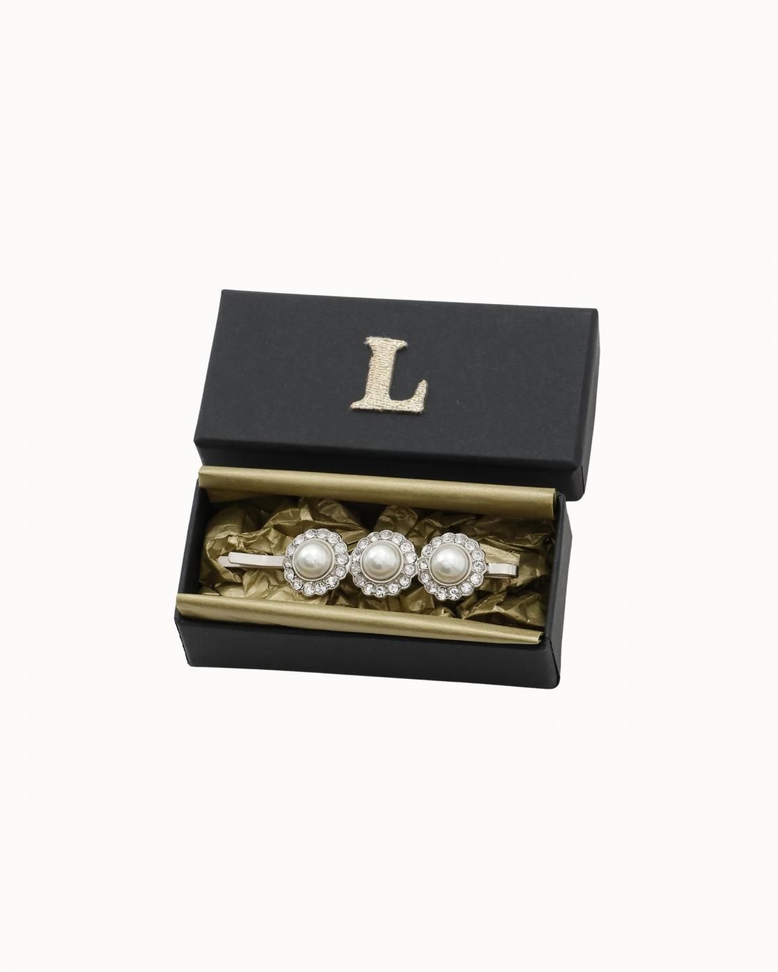 たっぷりとあしらったパールと中心のクリスタルが上品な存在感を放つ、一点一点職人の手仕事によりつくられたヘアピンです。