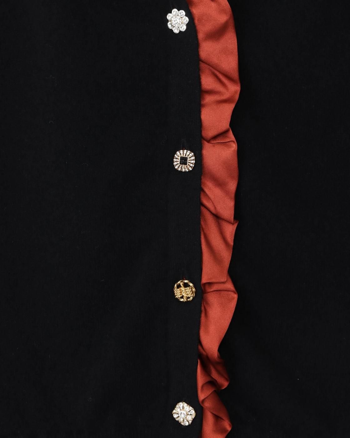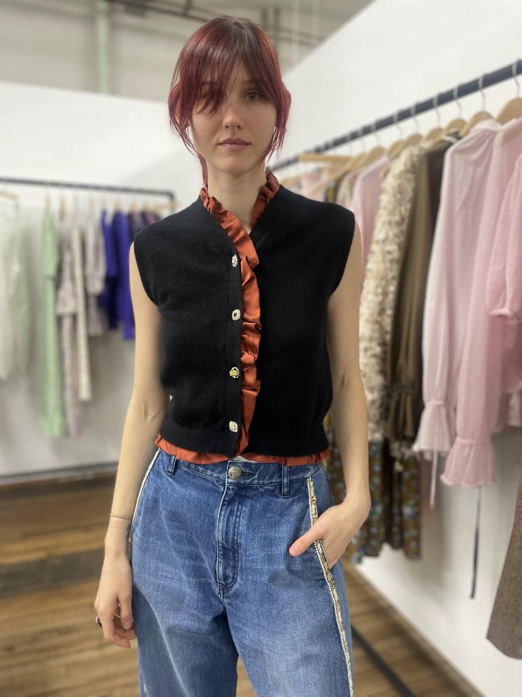 最高級カシミヤを日本で丁寧に紡績し、なめらかで贅沢な風合いに仕上げたカーディガン。 ストレッチ糸と一緒に編むことで、ふっくらとした立体感と柔らかな弾力があり、着心地の良さはもちろん型崩れしにくく美しいシルエットを保ちます。 首元にはシルクサテンのフリルをあしらい、肌あたりの良さに加え、ビジューのボタンが華やかで上品な印象に。 アウターとのレイヤードもしやすいコンパクトなサイズ感です。 上質な素材と上品なディテールが織りなす、贅沢で心地よい一着です。