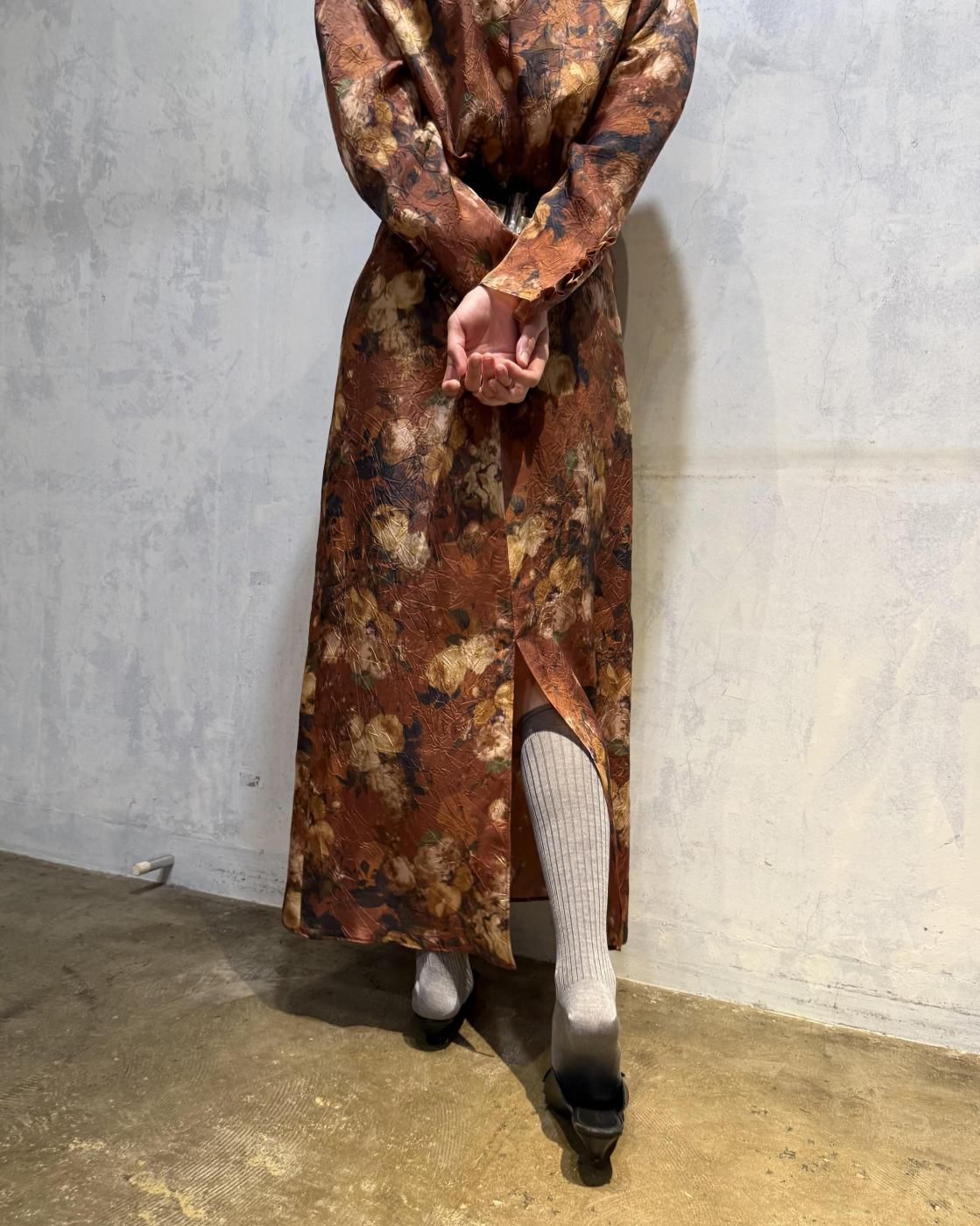 アーカイブに眠る花々に新たな色彩を重ねた、leur logetteオリジナルのプリントスカート。 キュプラツイル素材にシワ加工を施し、滑らかな肌触りと吸湿性を兼ね備えた、肌にまとわりつかない軽やかな着心地に仕上げています。 ウエストはリボンで調整ができ、お好みのフィット感に調整が可能です。 後ろには深めのスリットが入り、歩きやすさはもちろん、パンツとのレイヤードスタイルもお楽しみいただけます。 リラックス感のある穿き心地と、動くたびに揺れるエレガントな佇まいが魅力な一着。 同素材のブラウスとのセットアップもおすすめです。